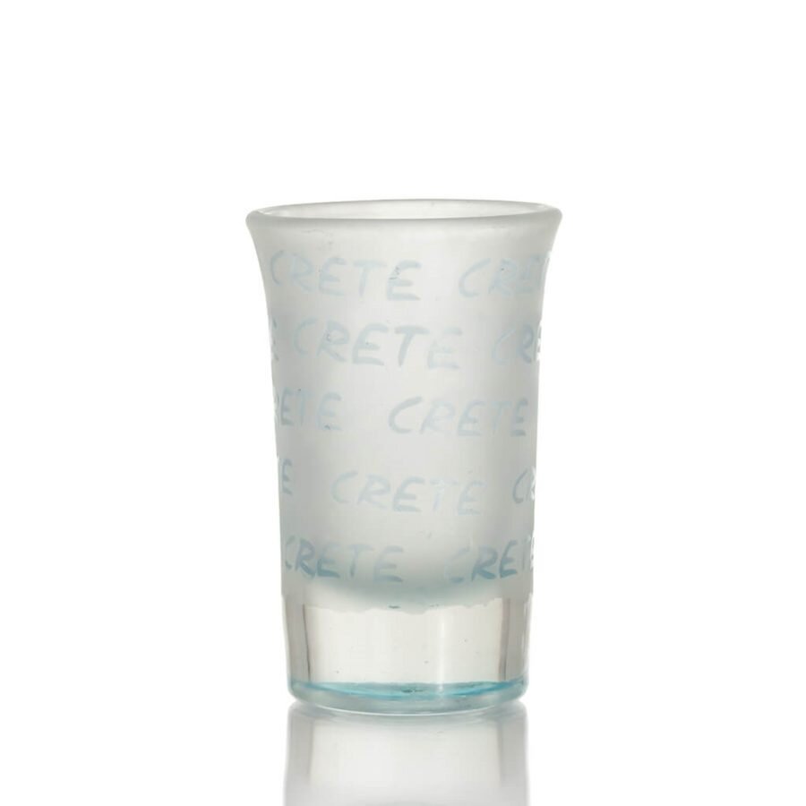 Clear glass blue 7cm shot glass with Flag print, kitchen, raki, tsikoudia, shot glass