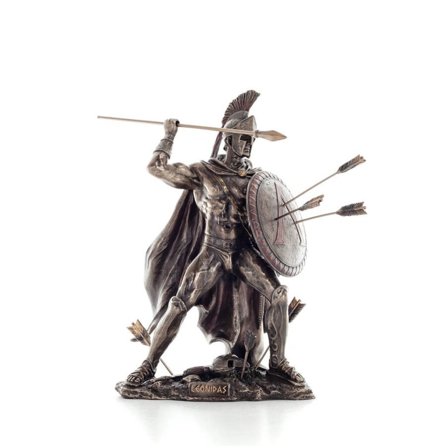 Leonidas: The King of Sparta with Arrows 21cm Full Length Veronese Bronze Electrolytic Statue, Ancient Greece