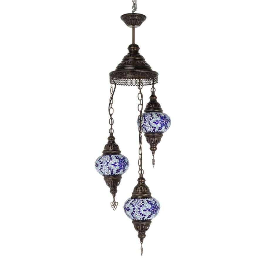 Multi-light ceiling pendant with 3 lamps 90cm Handmade Metal with glass